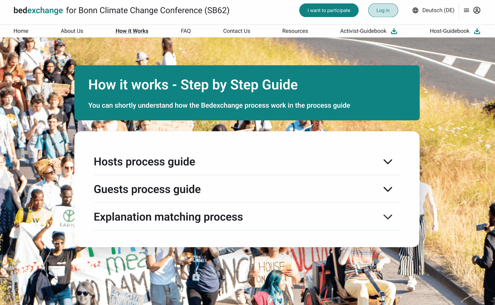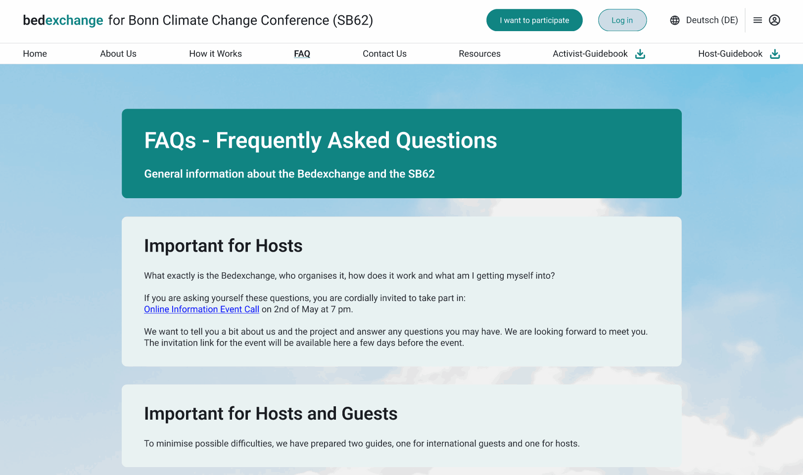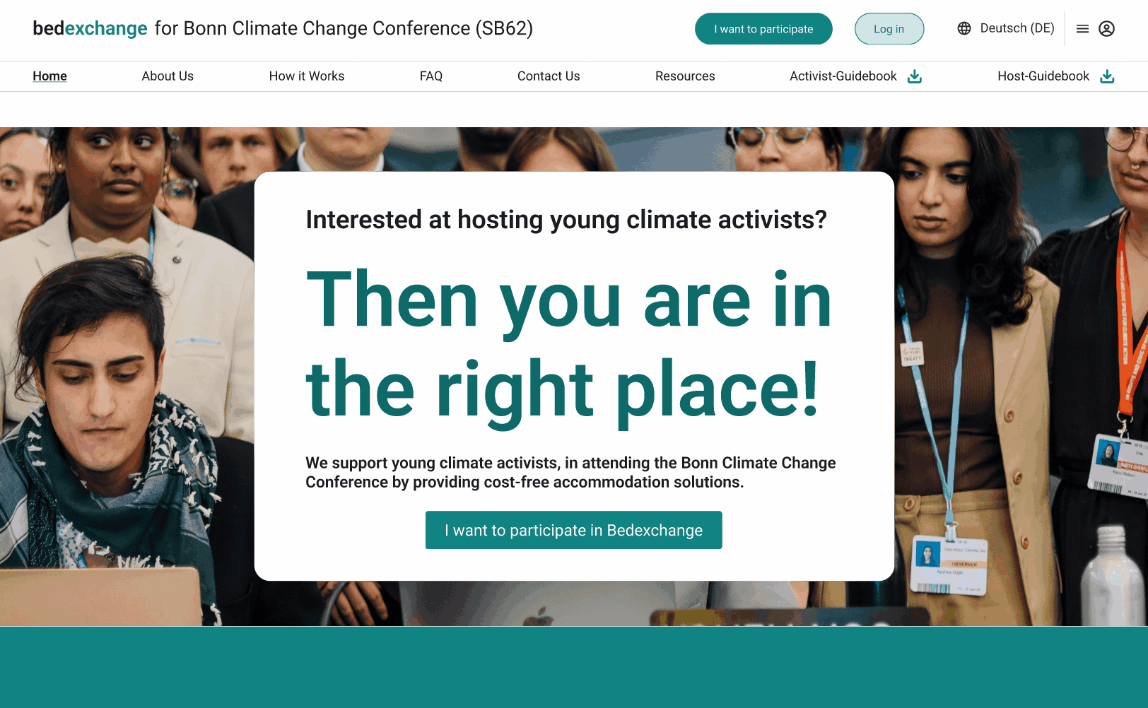 Additionally, explanatory content about the SB62 Climate Conference, Bedexchange, and its processes has been added, along with the opportunity to join the newsletter to become a host next year, and testimonials from hosts from last year.